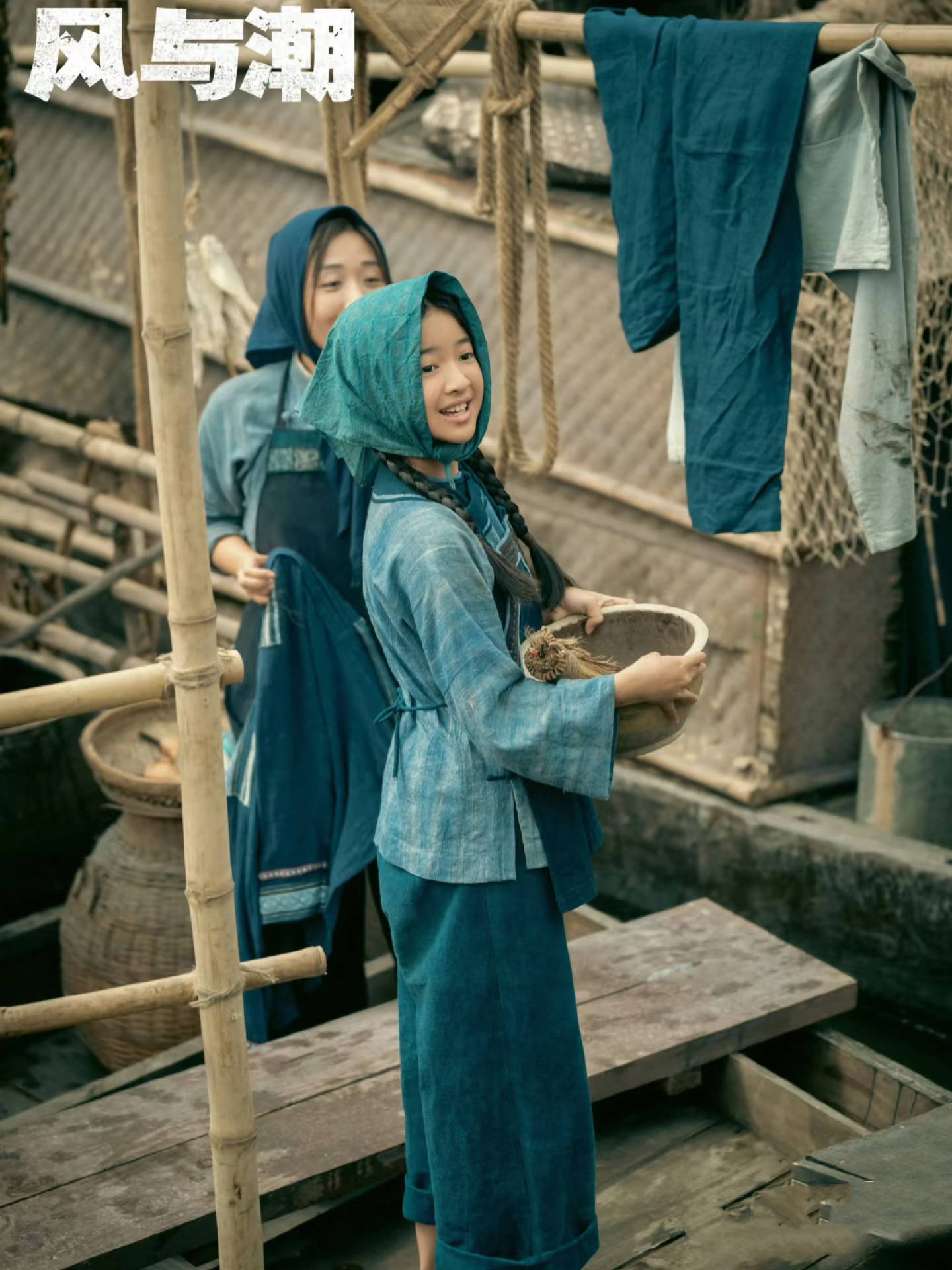 剧中的她穿一身蓝色粗布衣裳,裹着头巾、眼神里都是灵动可爱,没有任何突起感。在《风与潮》中,天天饰演的小渔赤脚踩船、眼神倔强,也得到网友的一致好评。