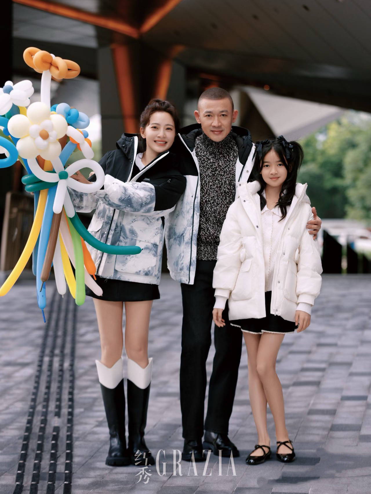 其实一家人除了拍大片,也经常街拍不同的广告。比如羽绒服的广告,一家人站在一起也很养眼。
