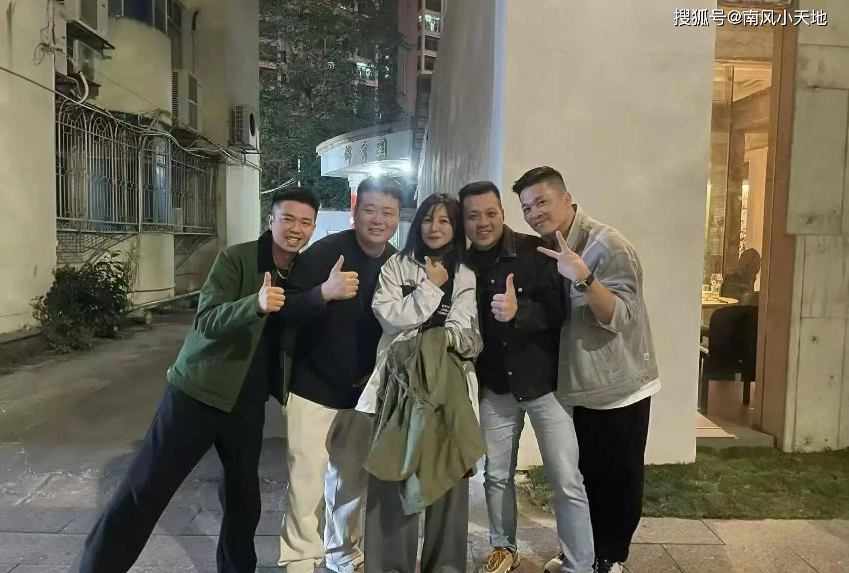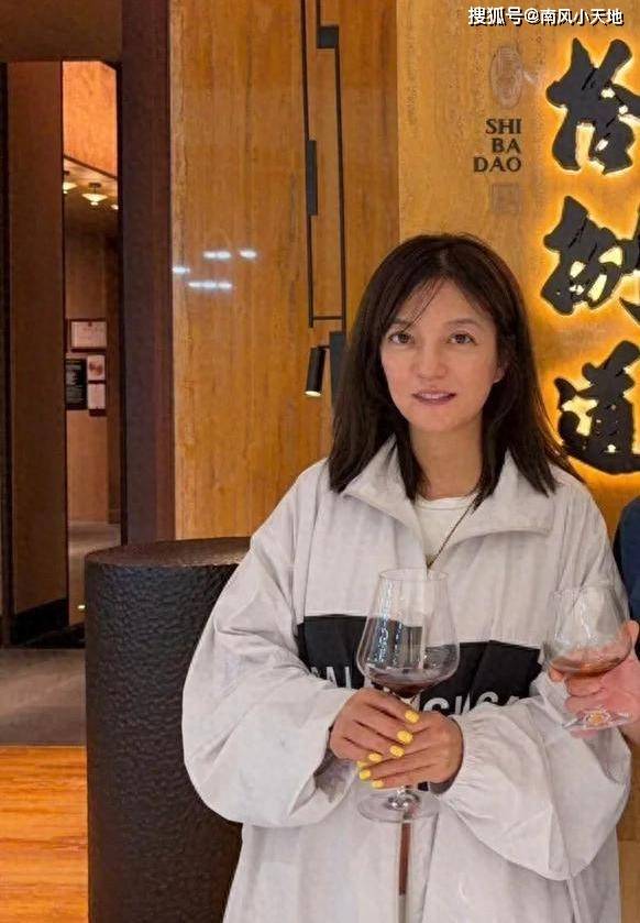 黑色夹克宽松又遮肉,里面T恤简单不抢戏,头发随意披着,指尖一抹鹅黄跳出来,红酒杯轻轻一举,笑容往上扬,站姿松弛不费力,朋友们围在旁边,气氛轻松不做作,这一组合影,看着就很生活化。