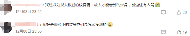 挺多路人也觉得没什么,“这也算纹身?我哪破了结痂了是不是也算”、“不知道的还以为她纹了大花臂呢,就这么一个小笑脸也值得说,真是闲的”、“我还寻思哪有纹身呢,原来就这么点,真够无聊的”。