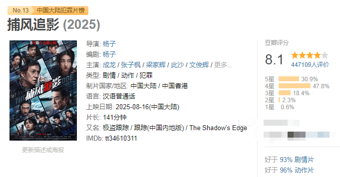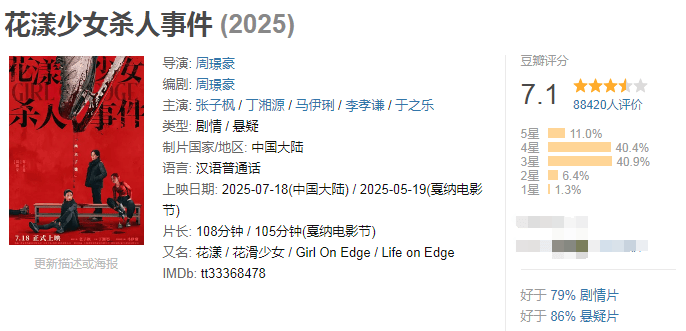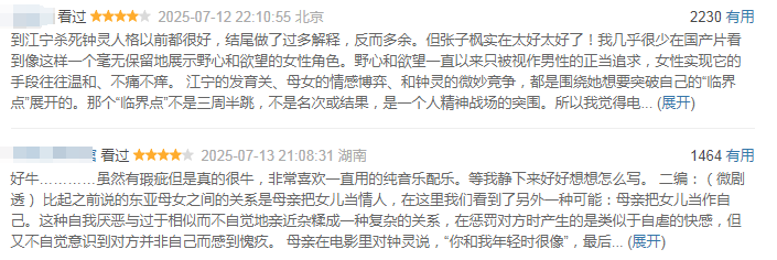 这部影片参与了今年暑期档,算是画风偏悬疑的文艺片,斯文和阿杠都很喜欢,可惜排片和票房都不太理想,好在电影本身口碑不错,张子枫的表现也很出彩,随手一搜都能看到不少影评人在夸。