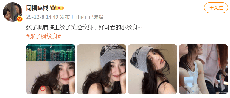 更何况,张子枫这个纹身实在太小,斯文开头也放了图,说实话我不专门放大看仔细找甚至都不知道它在哪,我是真挺好奇,为什么这么小的纹身都有人盯着说事,他们到底是怎么发现的呢?