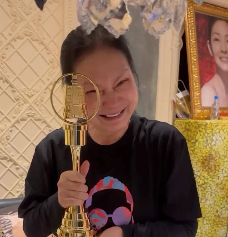 看画面中的环境似乎是在S妈的家里,对面有助理在录像,S妈看到奖杯是非常开心的,但拿起来之后,就又哭又笑,直言“补上了我的心,谢谢宝贝。”
