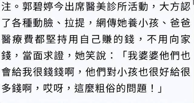 但最让人震惊的是她接受采访时说的话,一场活动让郭碧婷澄清了很多外界“谣传”。