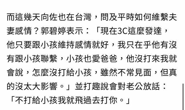 她还透露向佐现在全职在台北带孩子,自己工作时就由老公全权负责育儿:“他会给孩子做早餐、送上学,还学会了扎辫子”。