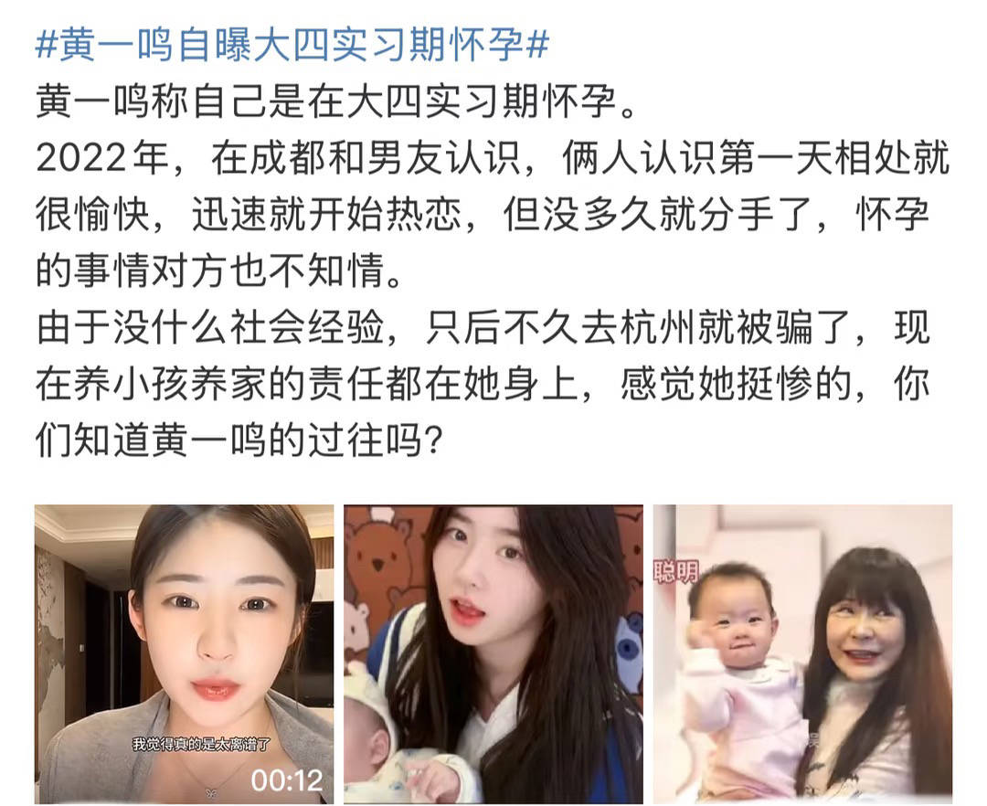 尤其是黄一鸣自曝大四实习期怀孕的消息,更是让人大跌眼镜。原来这位99年的姑娘那么猛,在别人为毕业去向焦头烂额的时候,她揣着娃在实习。