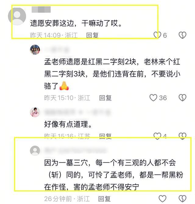 不过据知情人士透露,这样的安排是孟再平的遗愿,但遗愿中并没有交代其他事情,由此引发孟再平遗产争夺风波,以及“一墓三穴”风波。