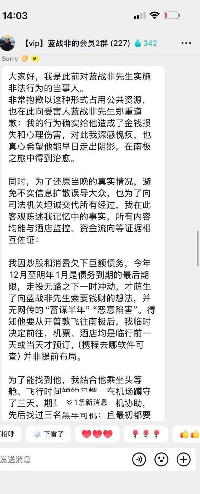 这则截图的内容让人震惊,居然来自疑似绑架蓝战非的嫌犯,但具体是不是个人,每个人的看法不同,由此也让蓝战非再次陷入非议。