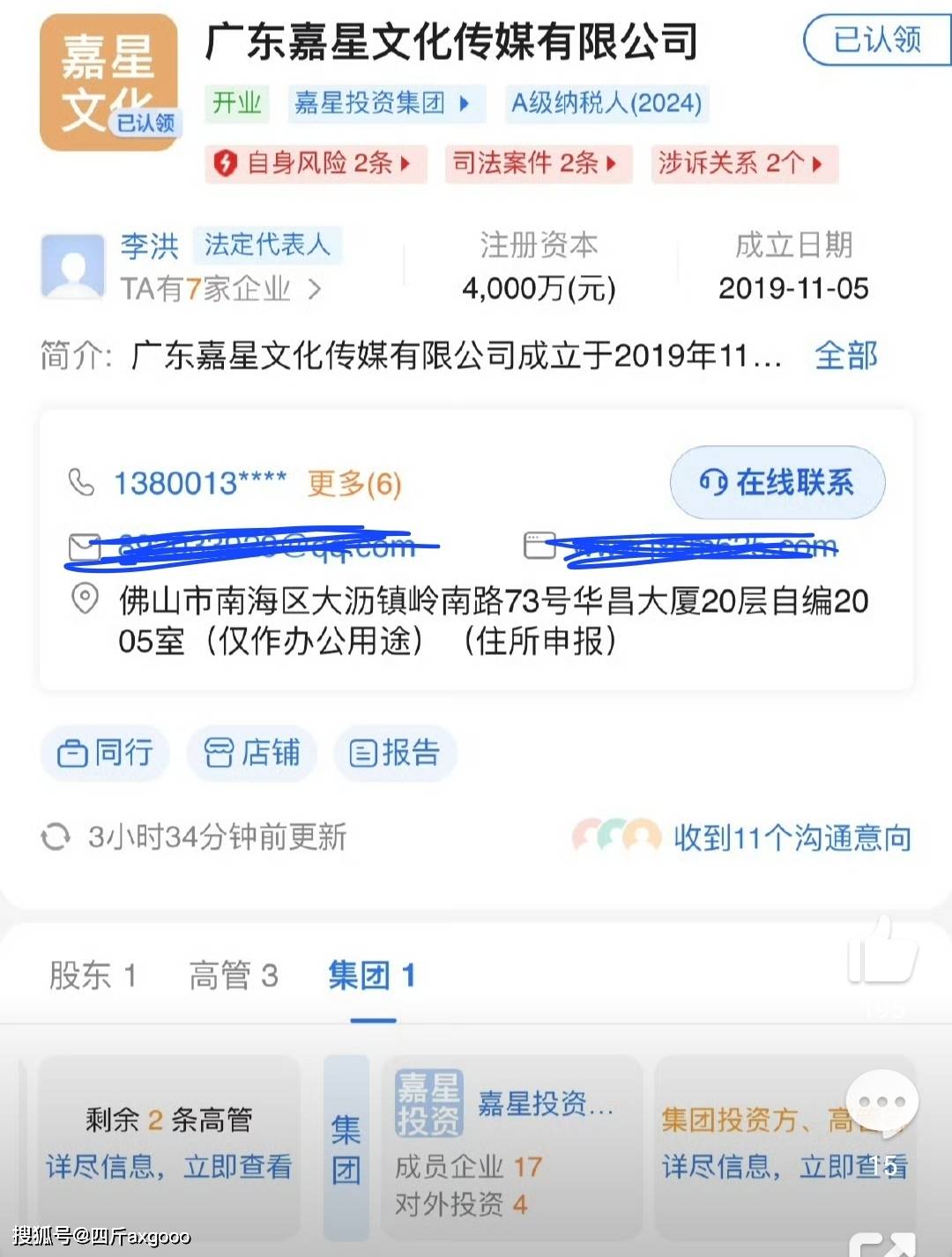 这家传媒公司是由广东嘉星投资集团有限公司全资控股的。