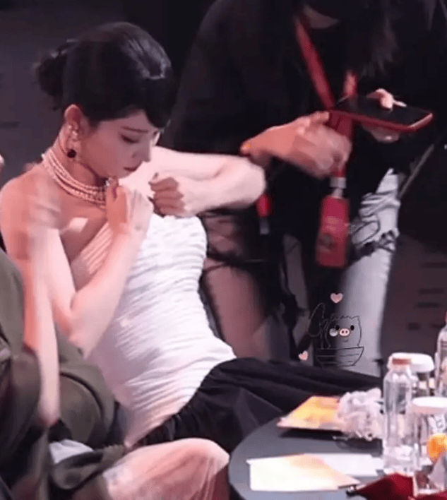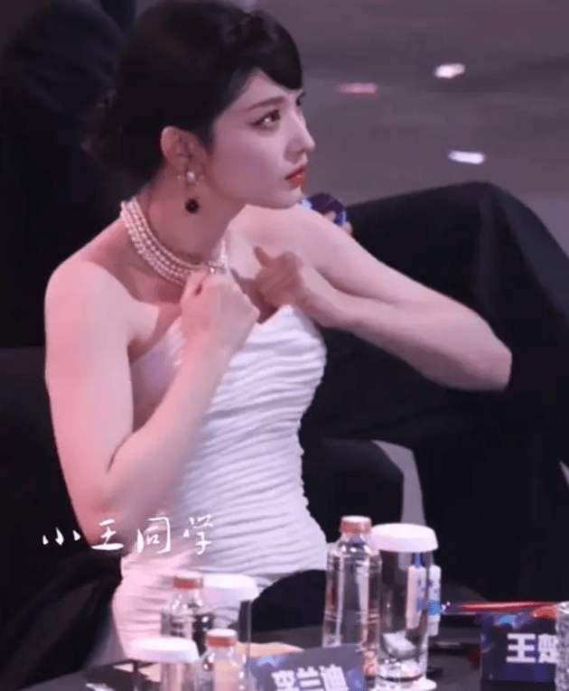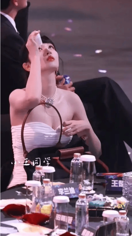 而且滴眼药水还仅仅是开始,王楚然又因为抹胸裙往下掉,她怕走光露胸,直接双手拽住胸口的布料,狠狠的往上一提,非常豪放!