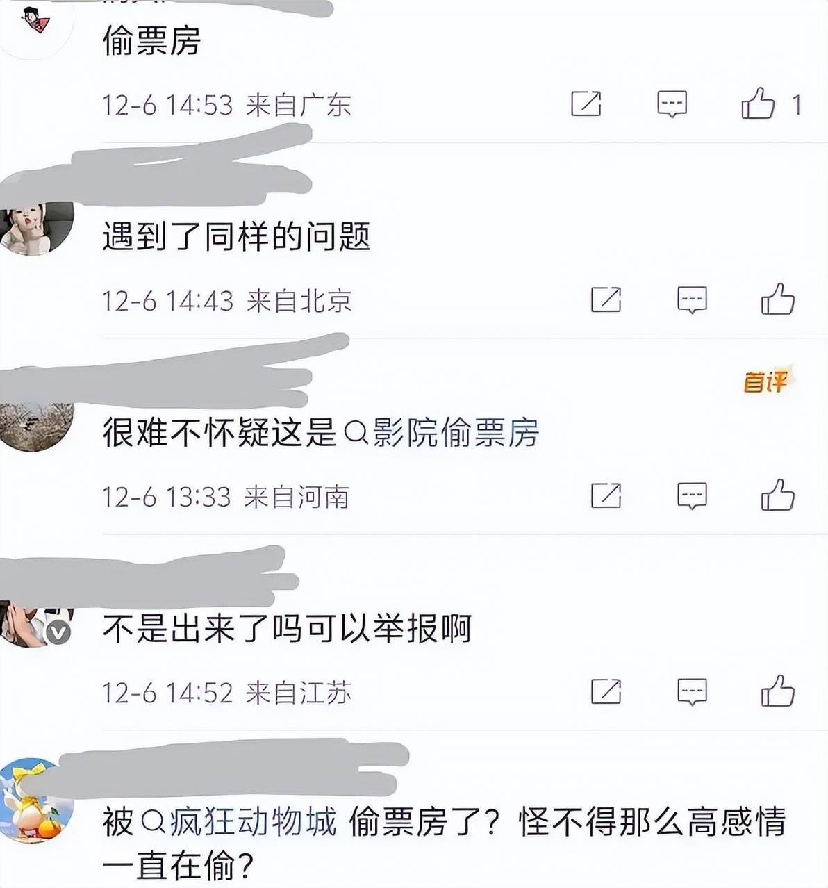 一位百万粉丝的大v博主也发了一个帖子,怀疑电影被偷票房。