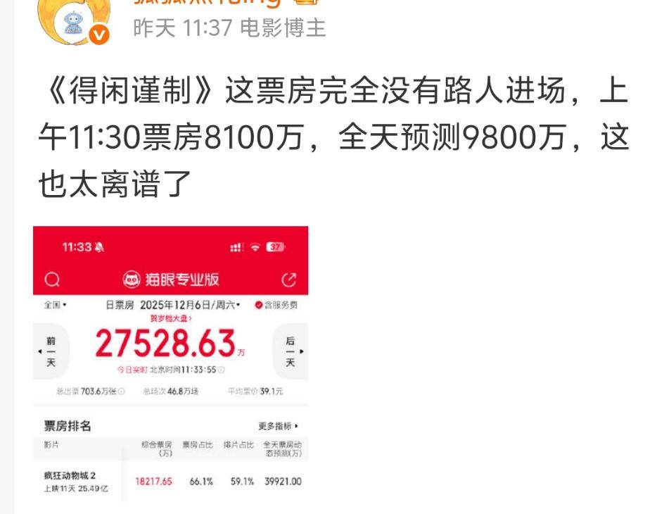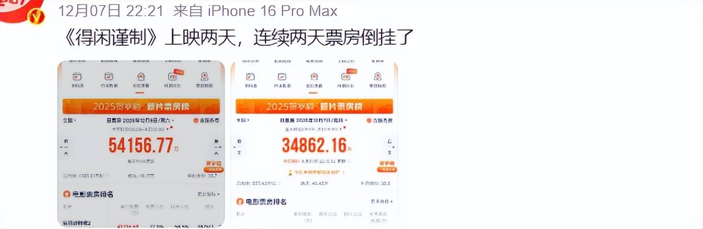 《得闲谨制》预售票房即过亿,将好几个多年不发博的业内给炸了出来,看似是形势一片大好。可电影刚上映一天时,票房成绩就因为倒挂被挂上了热搜,上映第二天仍然没改变倒挂的颓势,
