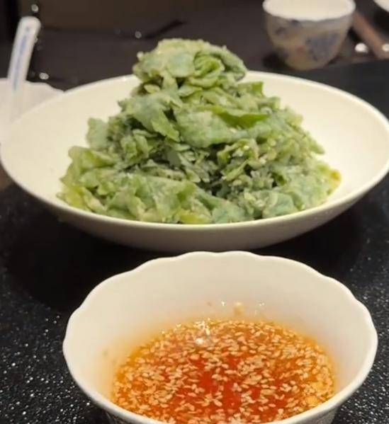 据饭店老板介绍,谢霆锋吃的这道蒸菜,是用大叶茼蒿的叶片做的,看起来非常好吃。