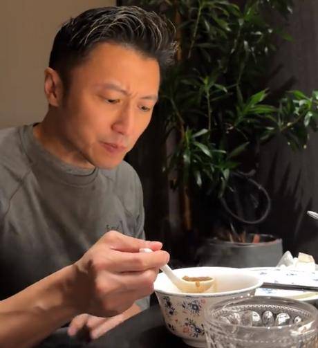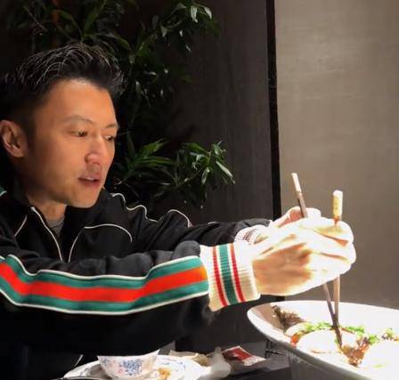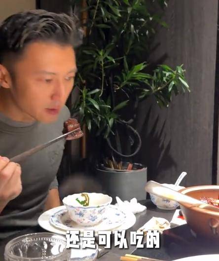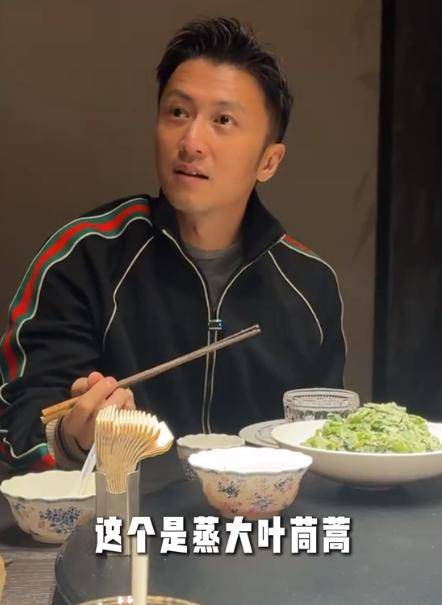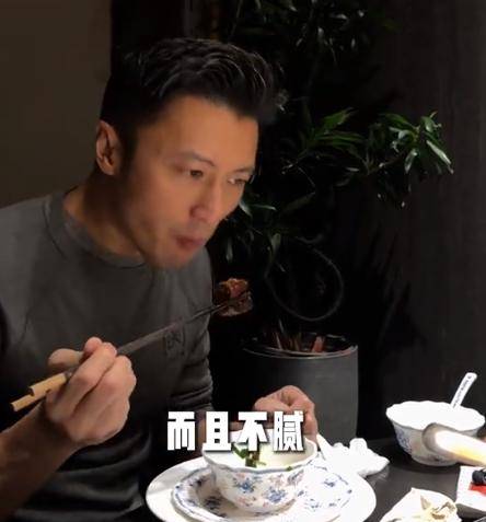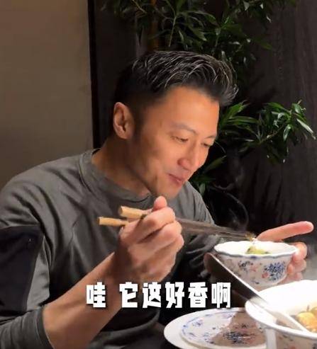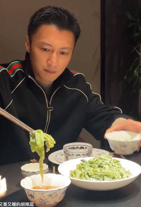 而且谢霆锋品尝完一块后,还觉得不过瘾,于是又夹了一大块,吃的那叫一个舒坦。