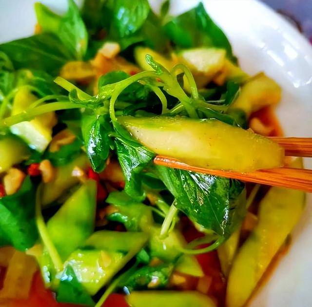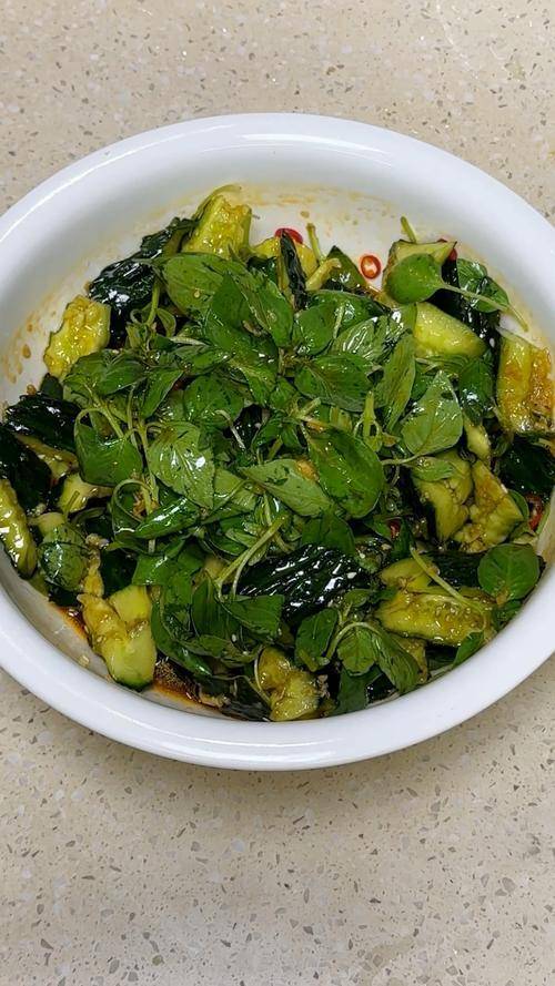 在河南,荆芥拌黄瓜,那就是凉菜届的“天花板”,口感清脆爽嫩,是夏天河南人饭桌上必不可少的一道凉菜。