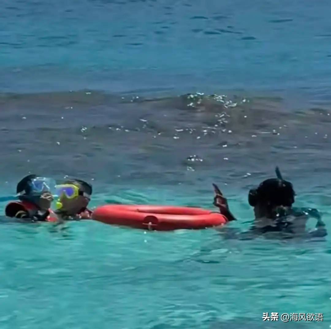 这边夏露负责美美的记录生活,那边马龙化身超级奶爸,全程陪着两个儿子玩潜水,他细心帮孩子检查好防护装备,牵着救生圈一点点带娃适应海水,双手还一直虚护在孩子身后,生怕有一点磕碰。
