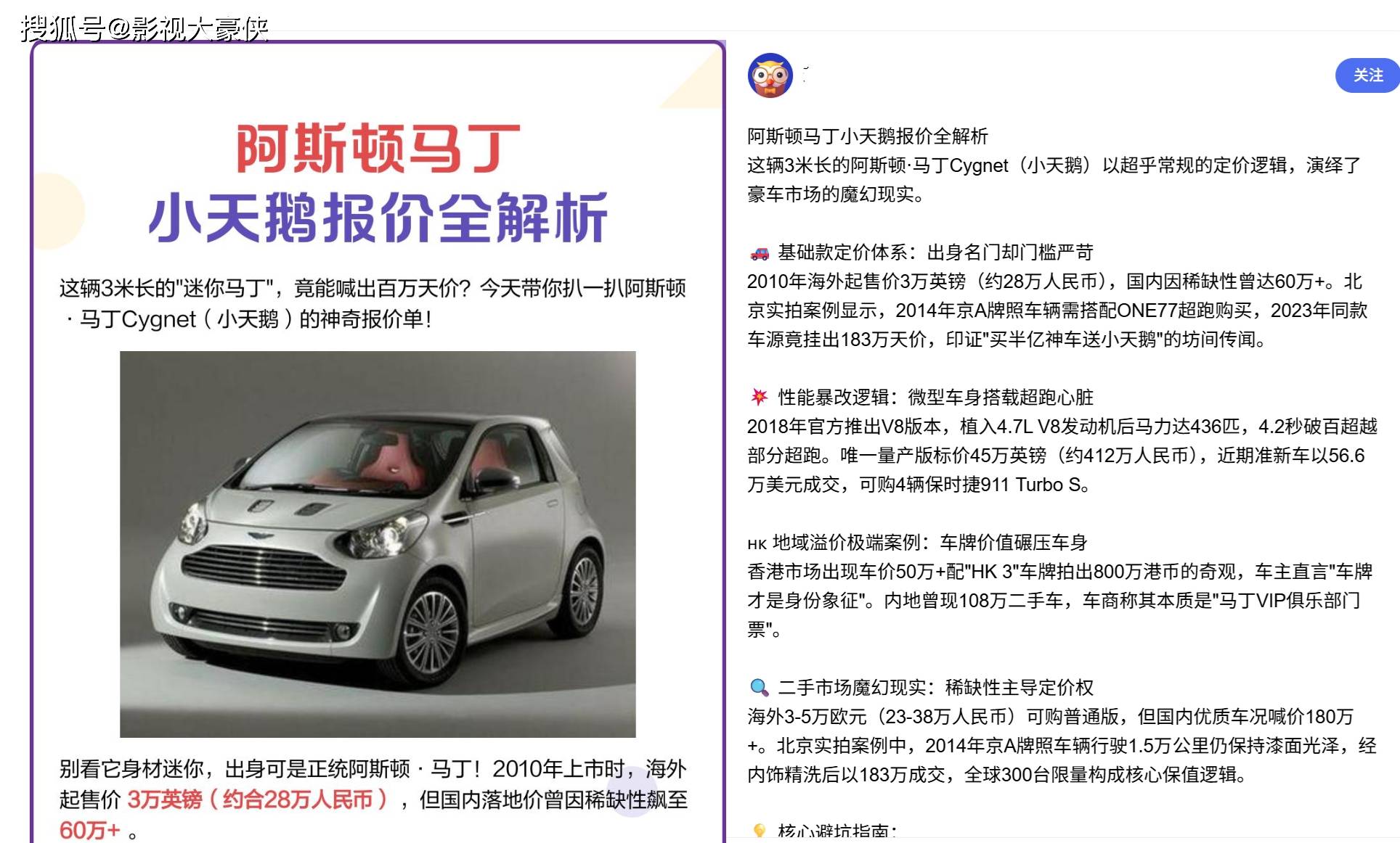 痞幼的这款“老头乐”在2010年上市,在国内因为稀缺价值一度高达60多万,2023年因为有价无市,价格飙升到了183万,2018年配备超跑功能,价格为412万,一辆车就可以购买4辆保时捷,即便是二手车也要108万,全球也仅有300台,在2010年到2013年国内仅仅有5台,后来还因为售价高以及捆绑销售而停产,被车友们誉为是“地表最强老头乐”。面对外界对痞幼收入的猜疑,痞幼经纪人首次回应说该车是从朋友那里租来的,痞幼并没有大家想象的那么富有。