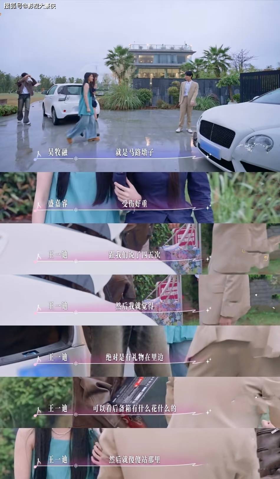 节目上最大的笑料就是暴发户一般的宾利哥,第一天开着豪车高调上场,不仅如此,当天下着雨,他还特意喊上众人看自己被撞了的车,宾利哥一直说自己车被撞了,让三个人给自己拿行李,结果打开后备箱大家发现压根没啥行李,痞幼觉得这个人一直喊人过来,是不是准备了什么惊喜,比如后备箱准备了一堆礼物给大家,结果打开后备箱,啥也没有,痞幼真的是差点笑场了。后来这哥们为了表现自己的留学经历,一直在车上和众人中英结合的交流,在男嘉宾说自己听不懂后还是自顾自的表现,让现场大家再度笑喷。