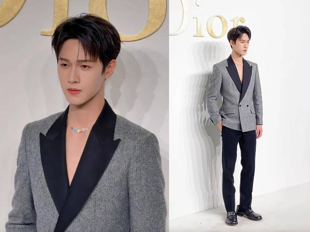 比邓为还小一岁的李昀锐,反而造型偏成熟,穿了一套灰黑色西装。在生图里,看得出西装下他的身材比较清瘦。