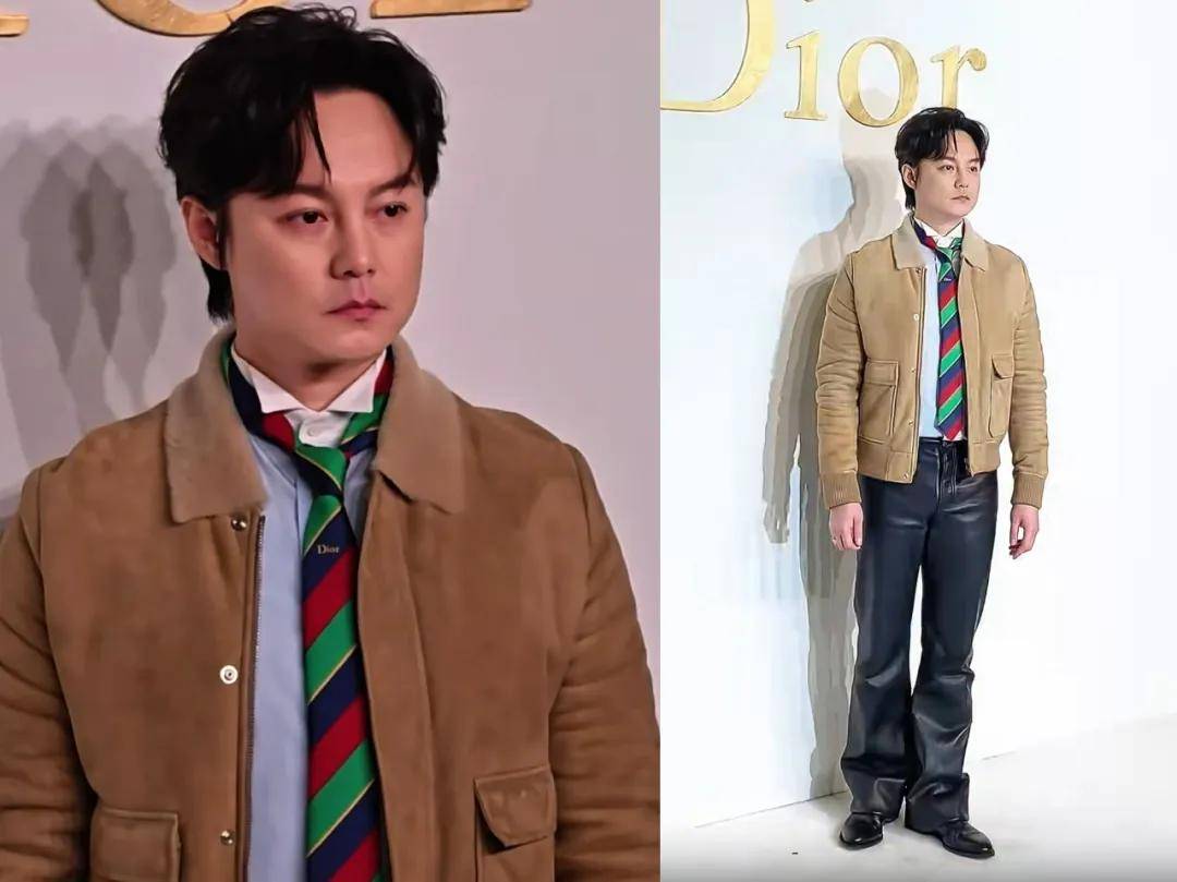 尹正穿了一件棕色外套和黑色皮裤,跟蓝色衬衫搭配的是一条彩色领带,全身上下每一件单品似乎都搭不到一起,难道这就是所谓的混搭?生图里的他身形相对别的男明星来说不算瘦,在还不到40岁的年纪,状态就比20+的时候差那么多,在明星中算是少见的。