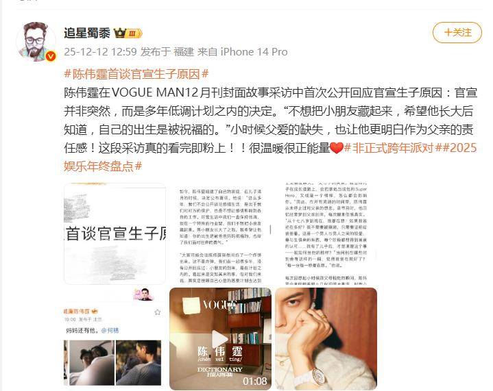面对外界“突然官宣”的惊讶,陈伟霆的回应很干脆:这根本不是“突发”,而是“计划之内”。他和何穗的感情多年低调经营,孩子的到来是“按内心愿景逐步实现”的自然结果。就连官宣时机都经过考量——选在自己主演的《许我耀眼》收官之后,既不让私事分流作品热度,也体现了对职业的尊重。这波操作,被不少网友解读为“理性又体面”,打破了明星要么隐婚隐育、要么炒作恋情的固有套路。