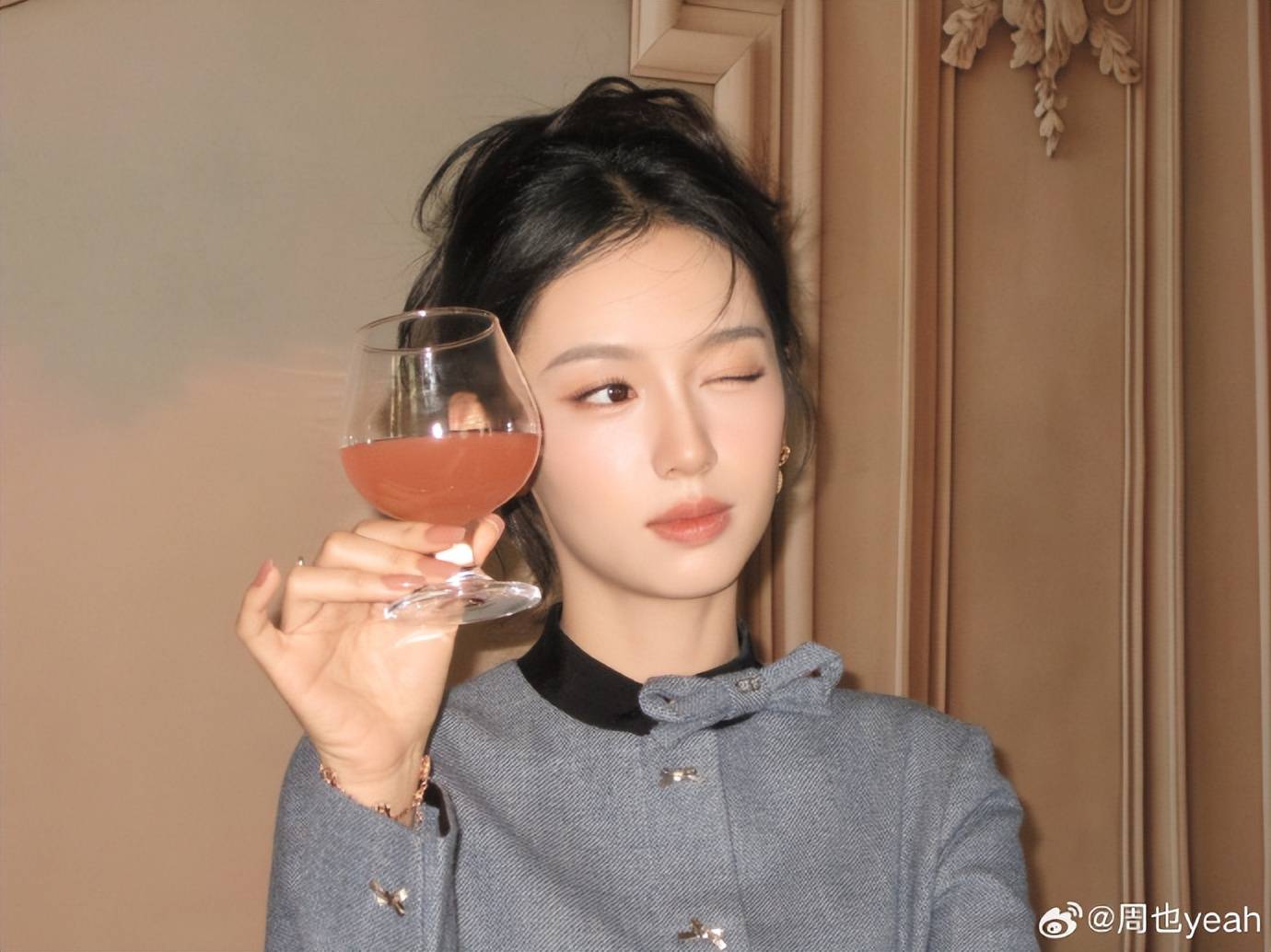 2025年12月11日,周也作为迪奥品牌大使出席北京三里屯旗舰店开幕活动,身穿灰蓝色短裙套装搭配凉鞋,服装出自设计师Jonathan Anderson的2026春夏系列。