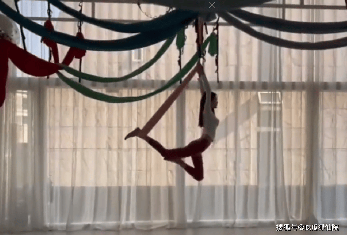 照片中的张元英,身姿轻盈地悬于半空,在瑜伽吊床上做出各种高难度动作。她的身体柔韧性极佳,每一个姿势都展现出优美的线条,脸上还带着自信且专注的神情。这组照片不仅让人惊叹于她卓越的运动能力,更让人感受到她对自我提升的执着追求。