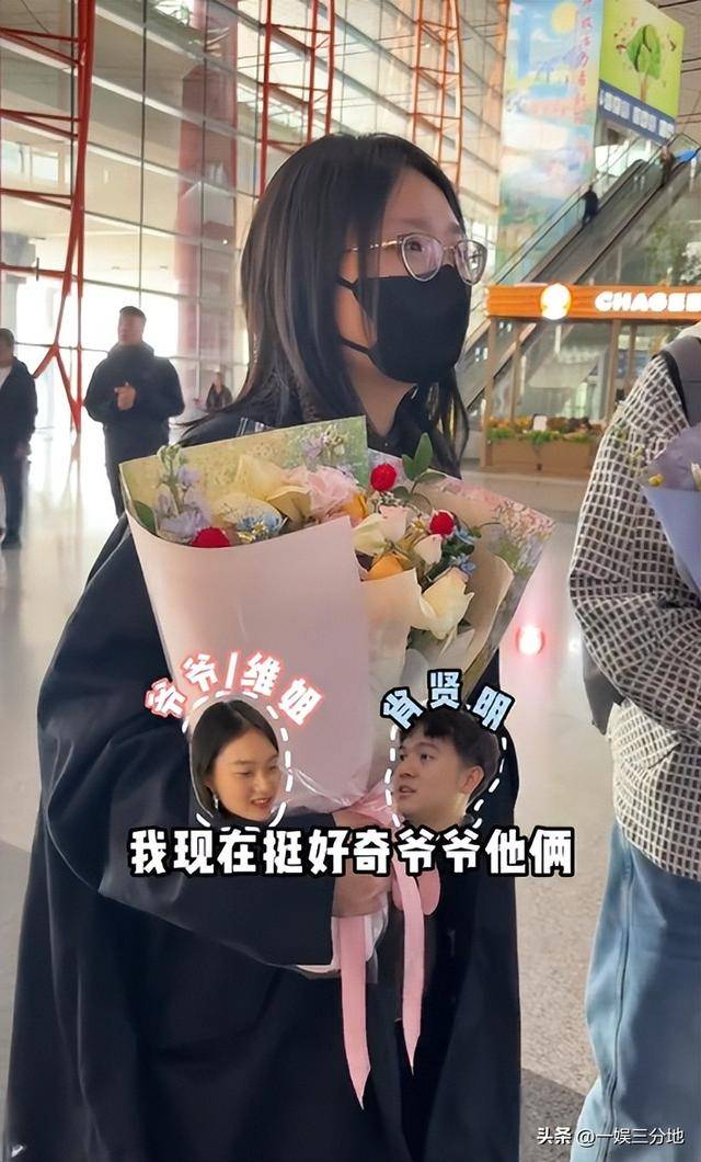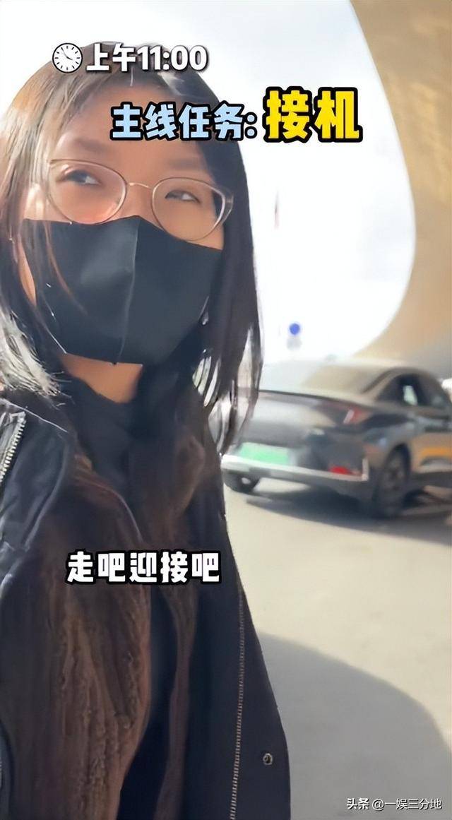 她去机场接同学,就在室内穿搭里加了一件黑外套,戴了个口罩,可以说是非常低调了。