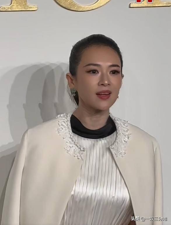 朱珠这次出场有点不太惊艳,上身的西装和下身的裙子看起来都不是一种布料。