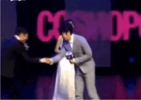 男主持见面就递上吻手礼,吓得他的手僵在半空不敢动。