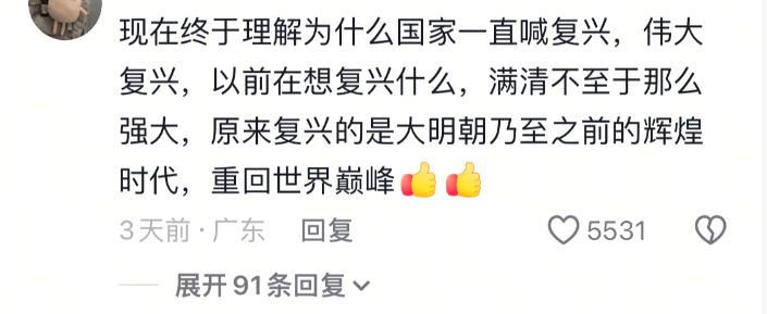 对明朝的封神也已经到了「美化缠足」「世界顶尖科学家全是偷师《永乐大典》」「西方工业革命和欧洲文艺复兴都是偷师华夏」的地步。