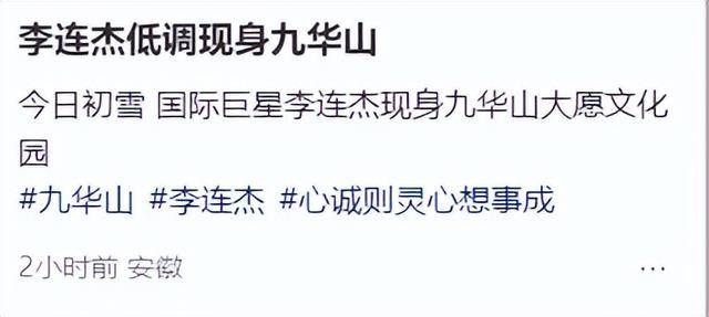 就在今天,有网友拍到了李连杰现身九华山的场景,李连杰信佛大伙儿都知道,出现在这里,估计也是跟他的信仰有关。