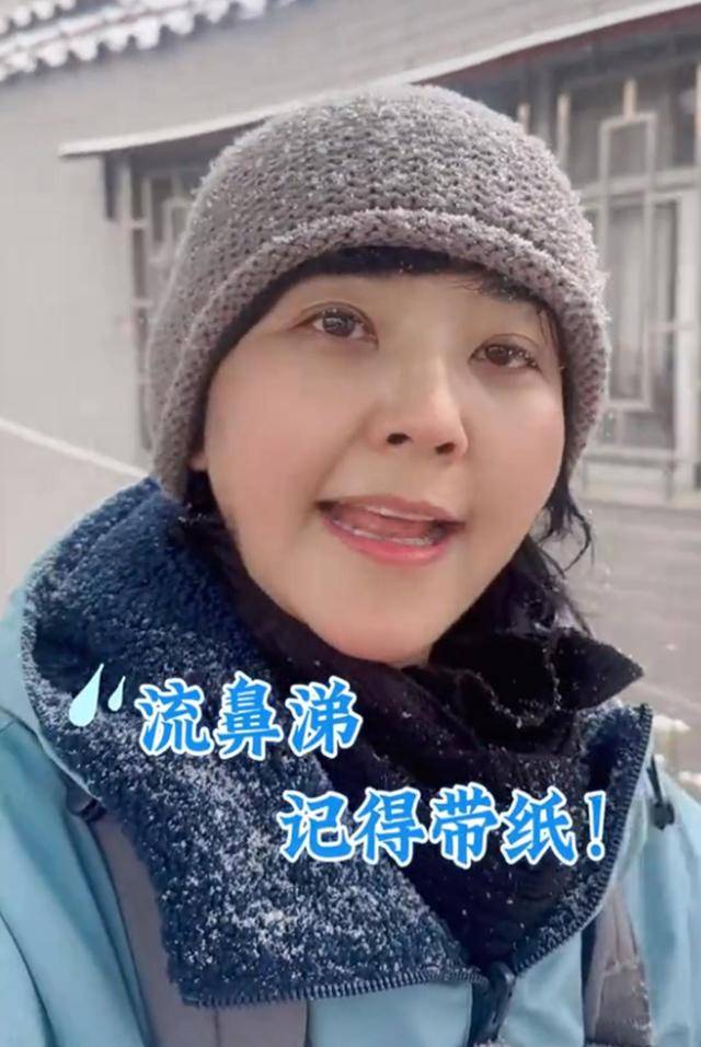 回家换鞋的间隙,她不忘对着镜子补拍:“雪天出门记得带纸,我这鼻涕都快流嘴里了。”