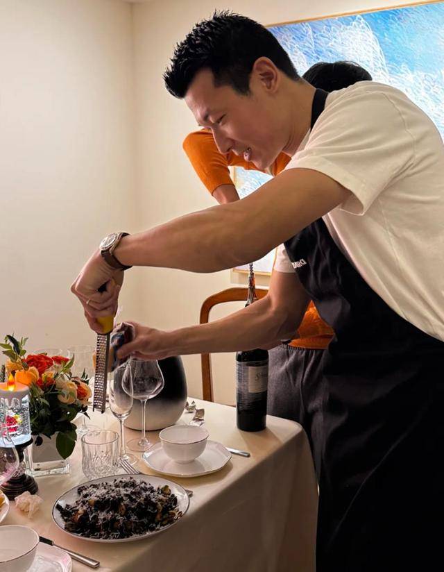 王昀佳在社交账号上分享了,在北京初雪当天和朱珠在家请客吃饭的动态。