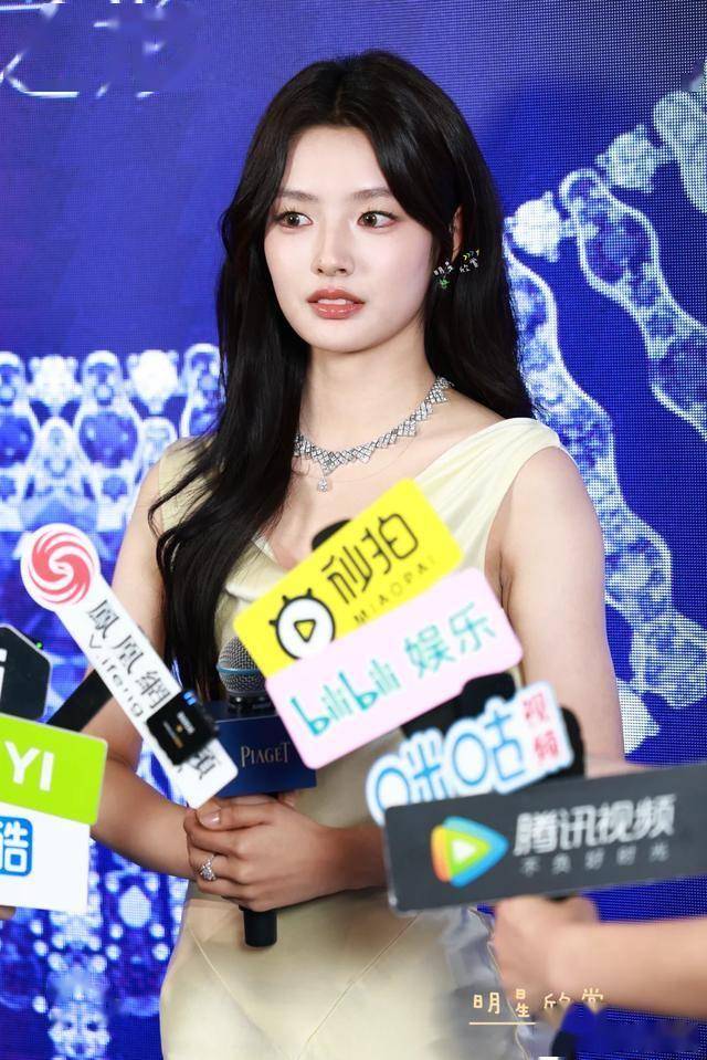 脖子上的珠宝项链和耳坠相呼应,整个人闪闪发光,徐若晗最近势头很猛,刚在尖叫之夜获得“年度飞跃演员”奖项。