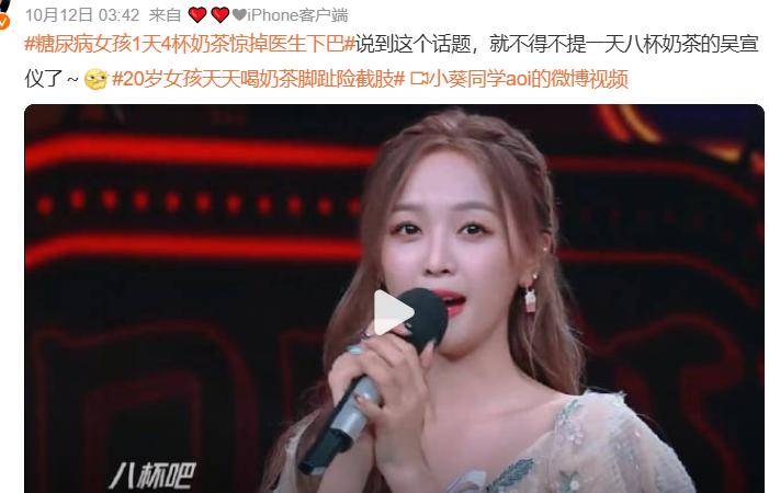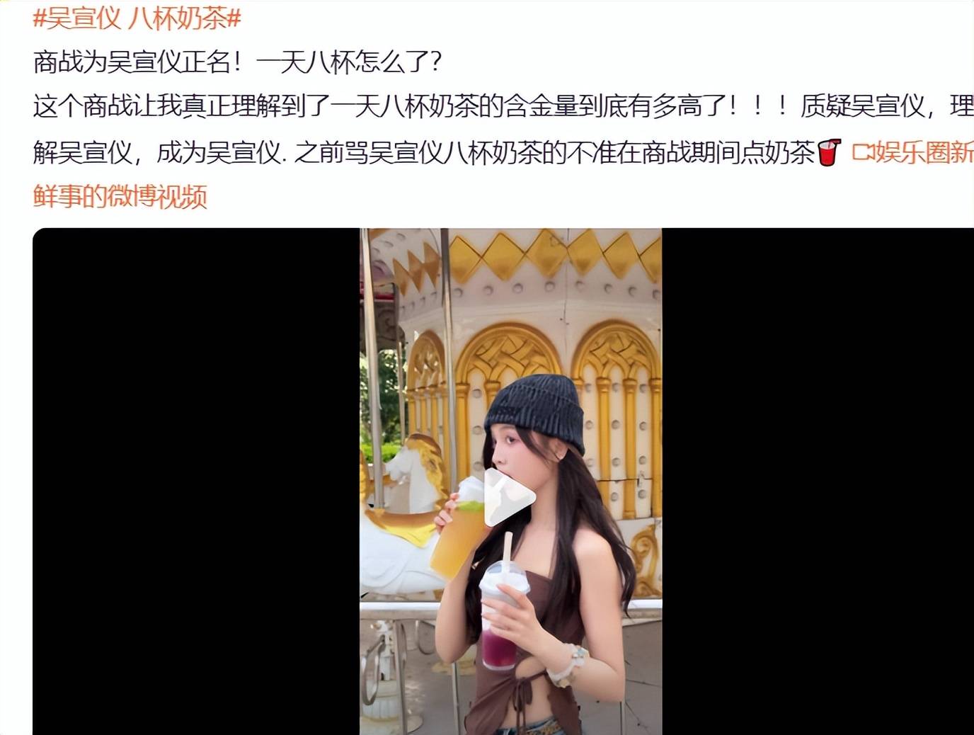 吴宣仪曾自曝自己一天喝八杯奶茶,疑似是想凡尔赛一把,给自己立个爱喝奶茶人设,没想到因为说得太夸张,成了她的最大黑点。