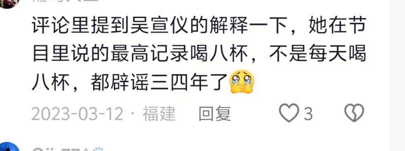 而且她还特意补充过,自己最高的一次记录才是8次,并没有一直这么喝。