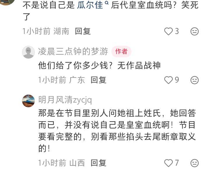 至于网友嘲讽她最狠的“格格”这个称呼,也不是她的本意,她也反讽过格格这称呼不科学。