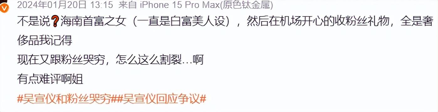 也有网友怀疑她是在标榜自己不矫情,总之就是在立人设。