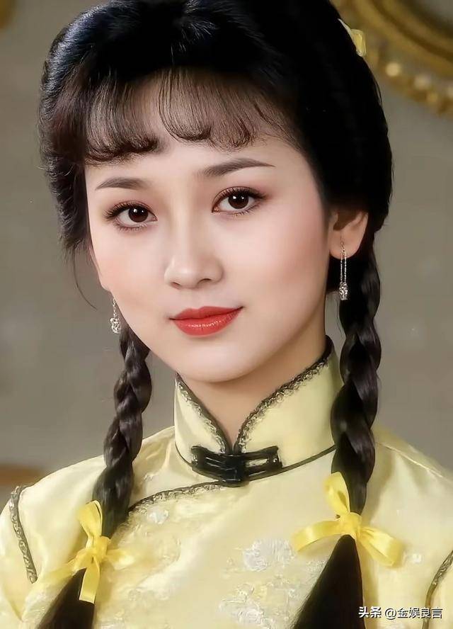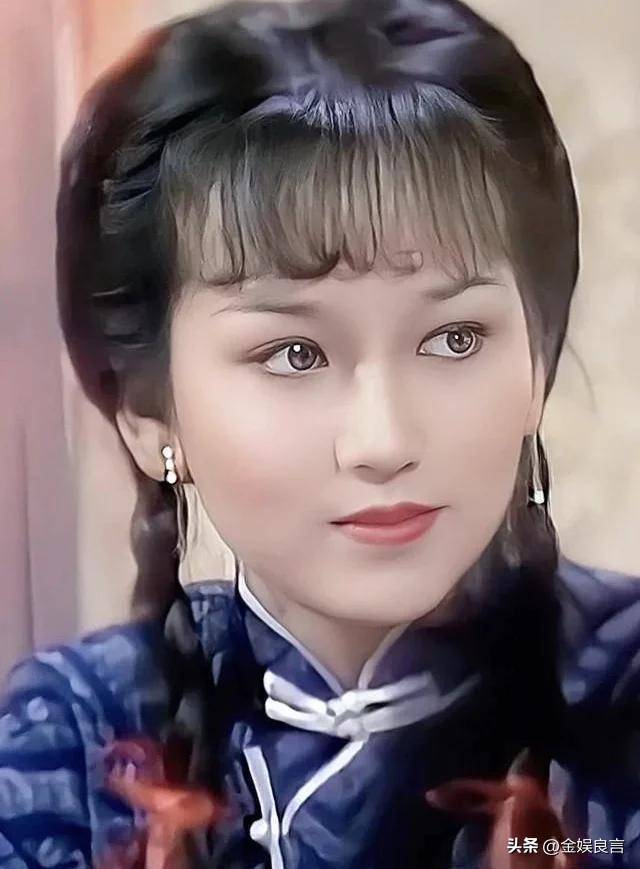 那时候没有美颜滤镜,她的美貌全靠自身撑着,柳叶眉下一双含情目,连额间美人尖都透着精致,让全国观众记住了这个“下凡的仙女”。