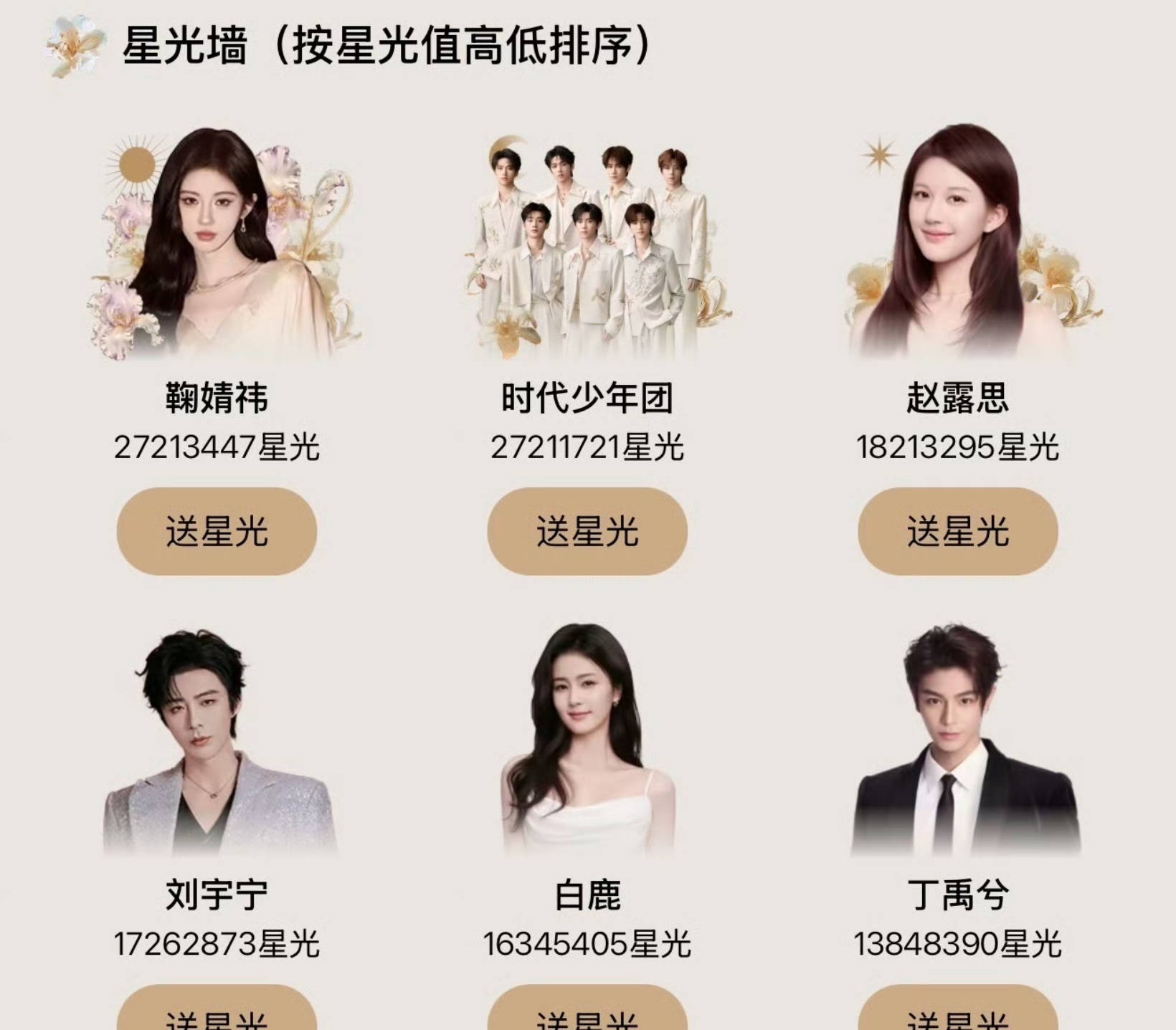 要说这场逆袭有多燃,数据直接说话。12月12日那天,鞠婧祎的排名堪称坐火箭,仅用112分钟就从女星第三一路飙升到总榜第二,单日涨幅直接突破100万星光值,看得路人都忍不住喊一句“瑞思拜”。到了13日下午,她的星光值更是冲到1896万,短暂超越了当时1862万的时代少年团,虽然没能把领先优势稳住,最终以1311万位列总榜第三、女星第一,而时代少年团则以约1449万稳居榜首,但这波操作已经足够让全网炸开锅。毕竟距离12月15日中午投票截止还有时间,最终鹿死谁手还真不好说。