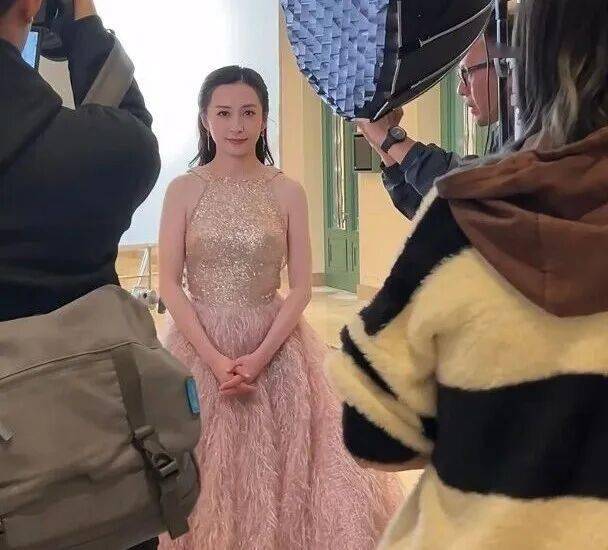 其中有网民捕获龚嘉欣单拖拍摄,嘉欣身穿金色闪片缀粉红羽毛晚装,明艷照人,她正在听工作人员讲解,见到网民拍她时,她不但没有不悦,反而微笑挥手打招呼。