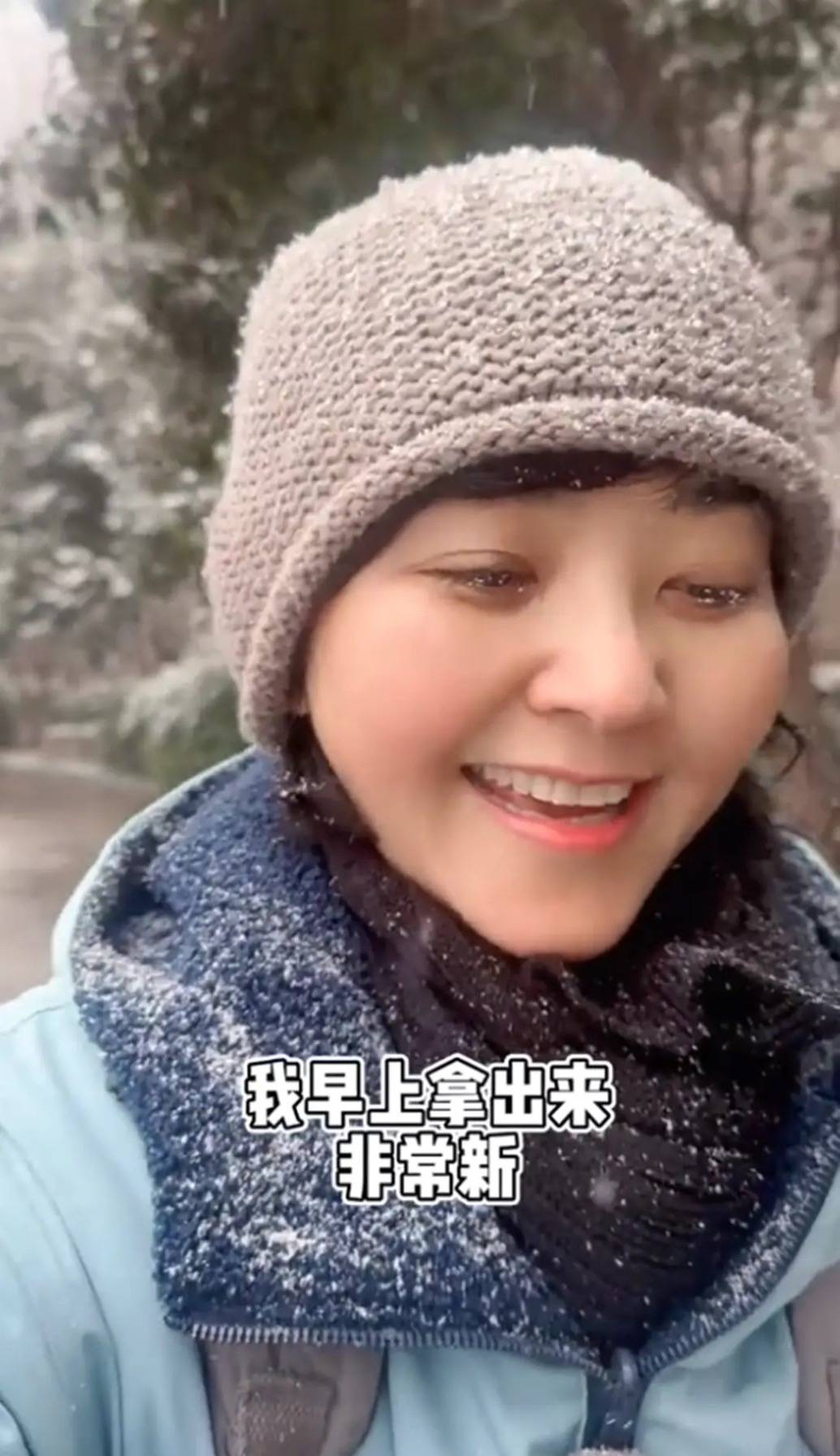 方琼还提到,为了能开心的踩雪,她特意找出一双20年前的鞋子。因为下雪天、地面很容易结冰,为了防止摔倒方琼特意找了一双爬山鞋。