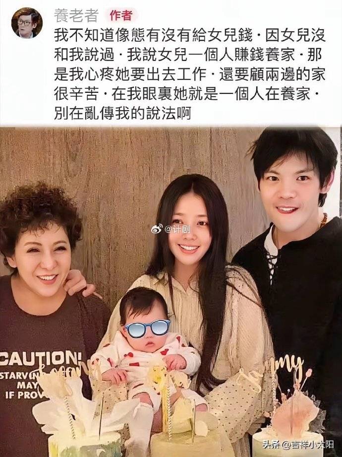 微妙之处在于向太对此的态度。就在郭爸爸发文前一天,向太在视频中谈及婆媳关系,提及郭父此前言论时直言“当然是不开心”,但选择不追问郭碧婷及其父亲,原因是“不想为难儿媳”。她强调,郭碧婷与她观念相似,不会用夫家或夫妻共同财产贴补娘家,如今郭碧婷工作更多是积累个人能力。这番表态,既划出了经济上的界限,也流露出对儿媳自主选择的尊重。而郭碧婷早前在活动中否认自己承担养娃费用、坦言婆婆家给予大量支持的回应,则让向太感到“开心”,形成了事实的闭环。