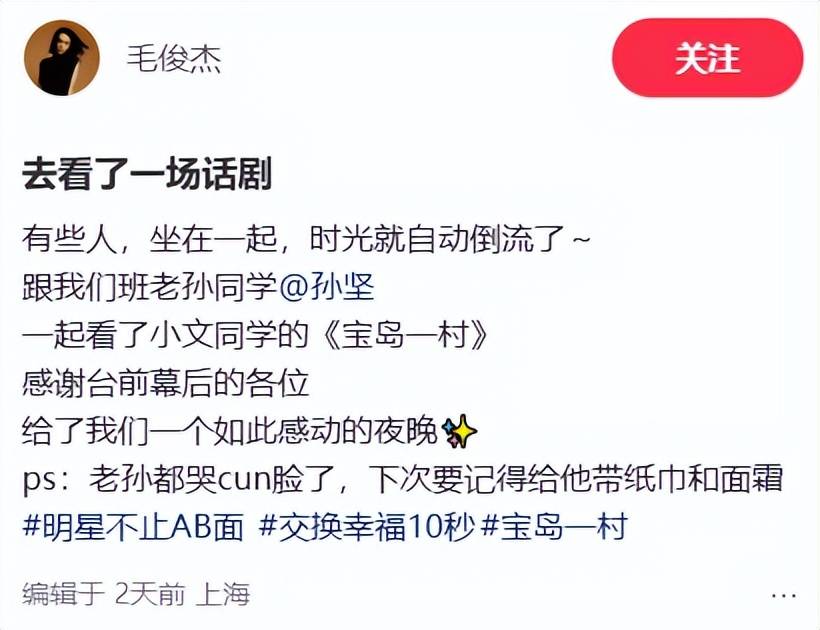 明星孙坚、毛俊杰也纷纷在网上发文力赞文章,尤其是孙坚,为了吹捧文章的演技,还用上了很夸张的感叹句。