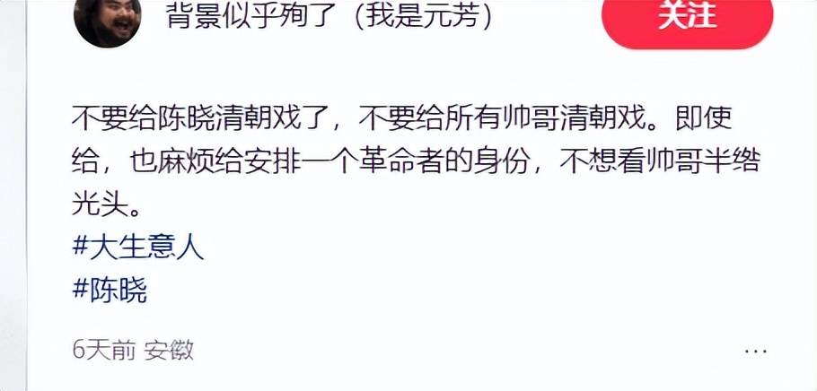 不只是剧被骂,很多网友情绪上头,还质疑到了演员的头上,喊话陈晓当男主就不要留辫子,留辫子就乖乖去演反派。
