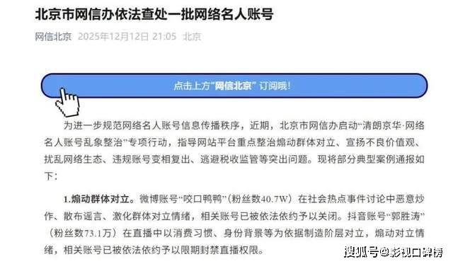 北京市网信办在“清朗京华·网络名人账号乱象整治”专项行动中,关闭了“猫一杯”“东北雨姐”“秀才”等劣迹网红试图复出