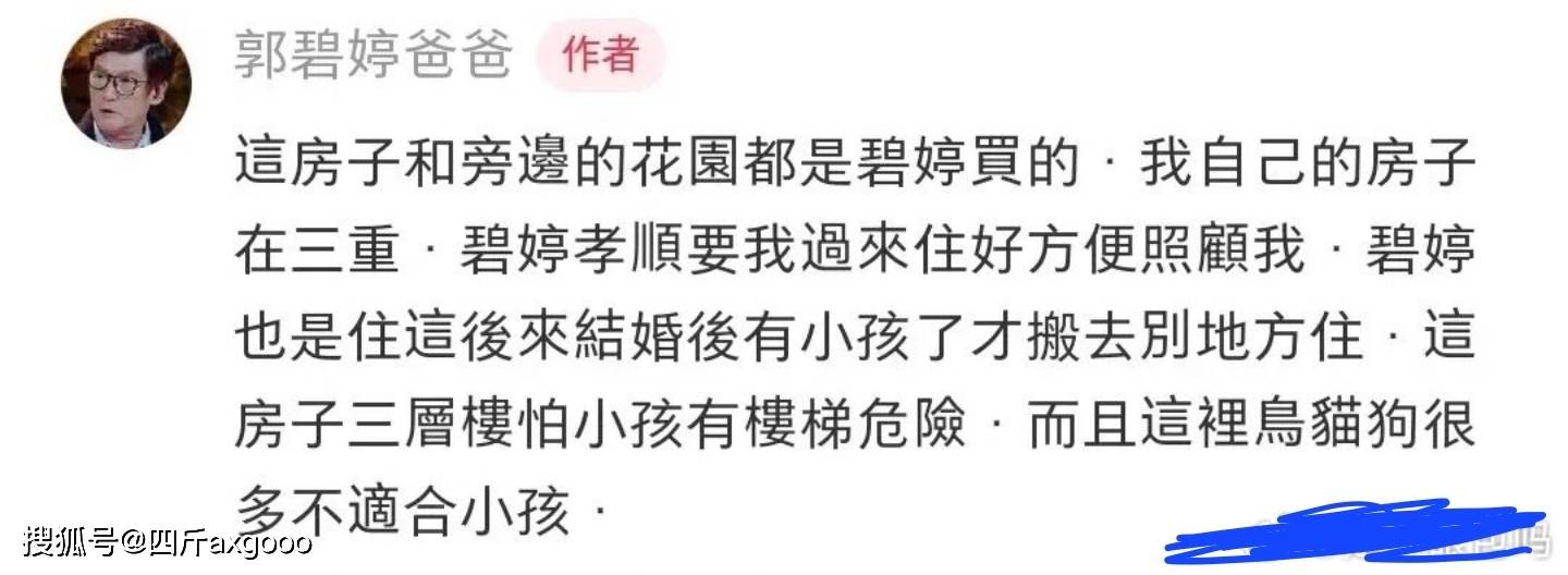 甚至最后那句解释更显得多余,专门强调房子都是“郭碧婷的”,就好像自己“占”了郭碧婷的房子,生怕亲家反感一样。