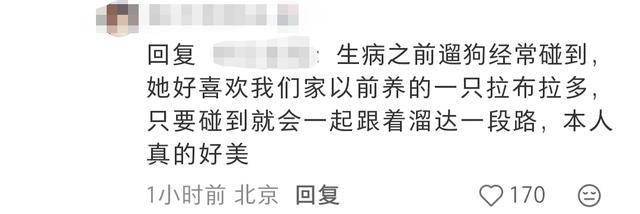 而据自称是她邻居的网友讲述,她“真的很美很美”,性格挺外向,挺风风火火的。她生病之前,自己遛狗经常碰到她,她很喜欢自己的一只拉布拉多,只要碰到就会一起跟着溜达一段路。
