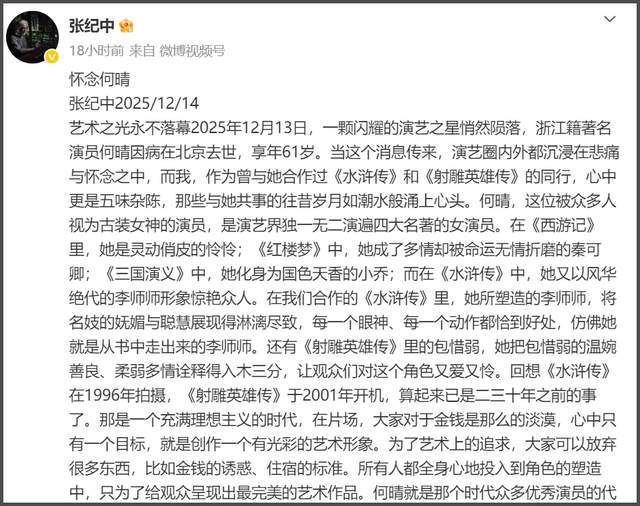 从何晴好友的采访中也能看出来,何晴生前人缘很好,和之前合作过的演员关系都很好。六小龄童、金晨等人都曾发文悼念,张纪中更是写了长文来追思。